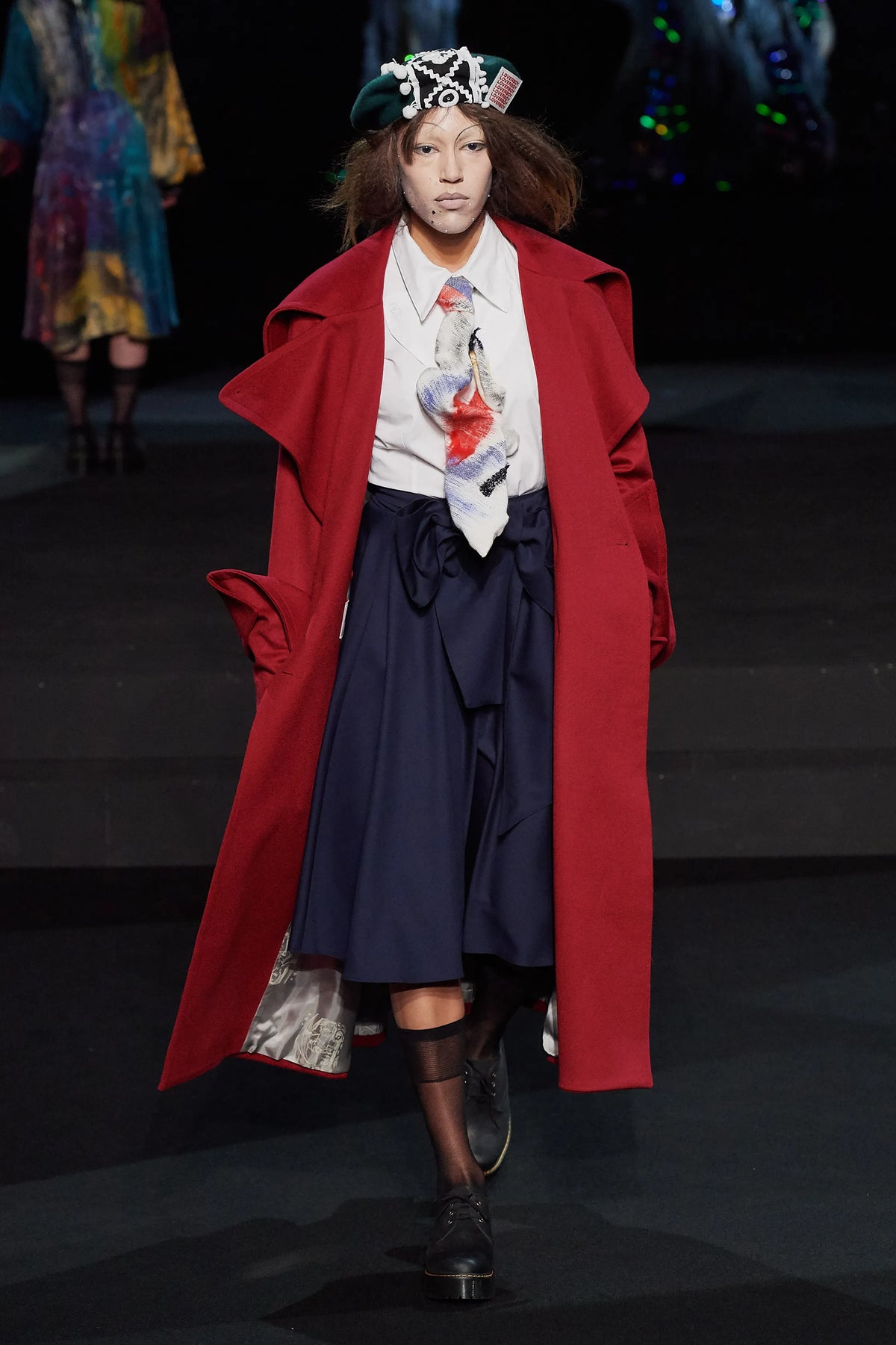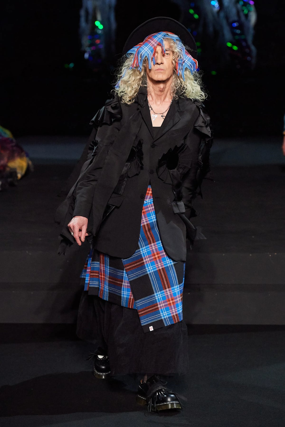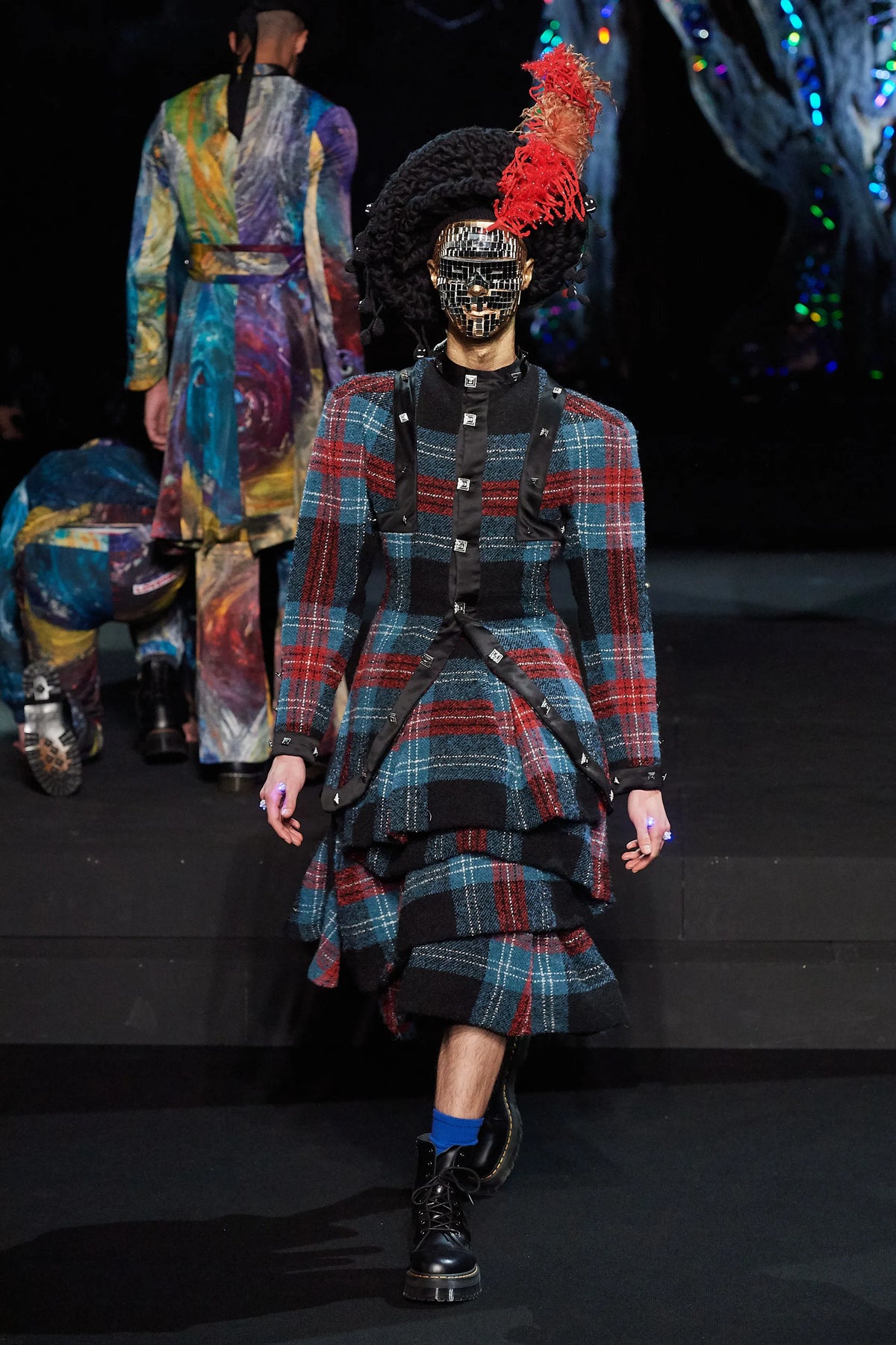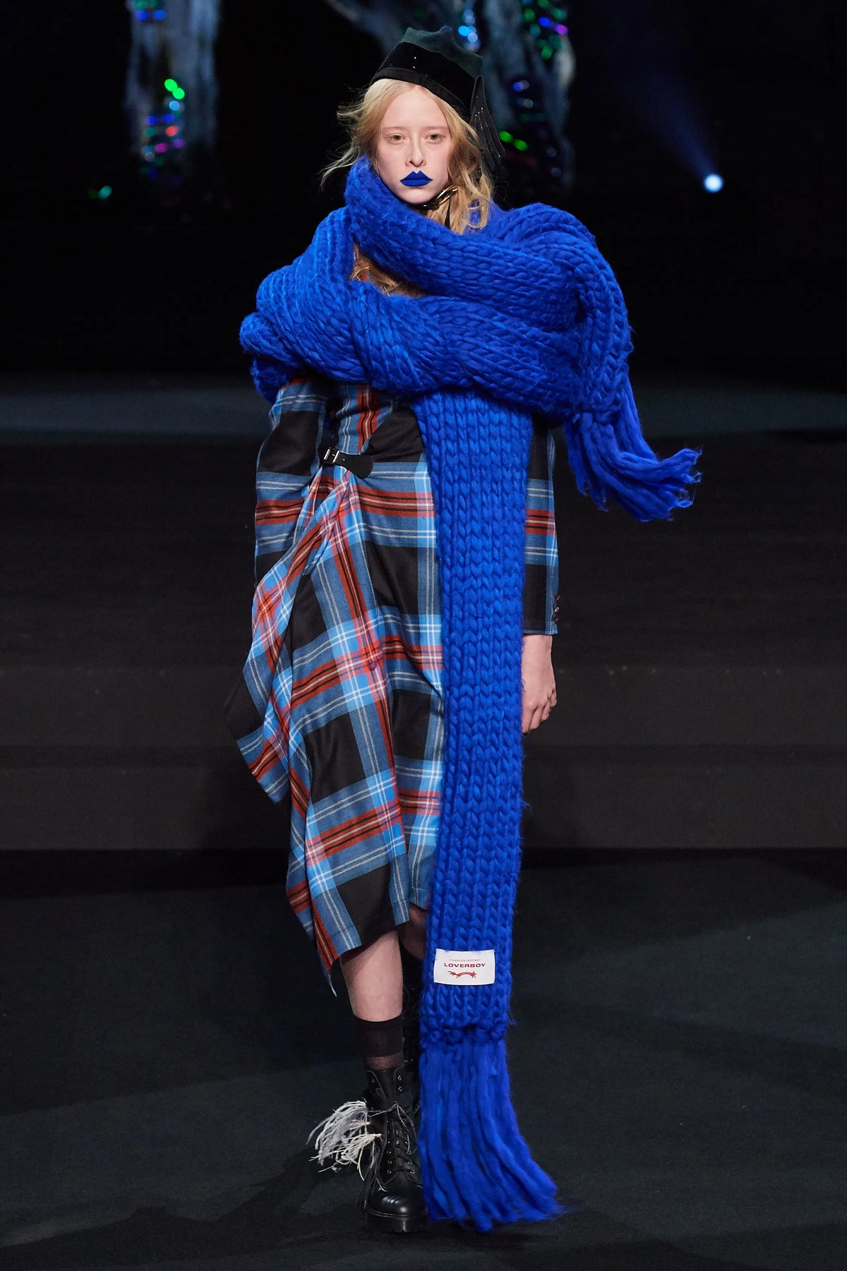 The more sophisticated a people become the more the animal speaks through them, and in the DANDERS, new proud forms emerge with the careful adornment of horse ceremony motifs. Their colours are bold, dark, warm: black, rich reds, burgundy, orange; earthen hues. Ambiguity is all: a uniform might clothe a soldier or a priest. As Scottish military history is evolved and re-rendered. Tartan is itself a touch-point for the revolution: a strip of LOVERBOY plaid flirts down the length of an army coat, a squaddie’s bonnet is lightened in the wool cotton mix that is ‘bumble’, flopping down bluely with raw edge.